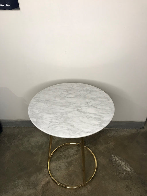 FlouIl tavolino Angle di Flou ha un'elegante struttura tubolare in nickel oro lucido e un piano in marmo bianco Carrara lucido. È perfetto per essere ...
