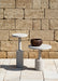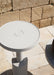 Dotati di una solida colonna di sostegno che termina con una base progressivamente più ampia e piani d'appoggio circolari, il tavolino presenta una superficie omogenea frutto di un'attenta lavorazione del cemento.
