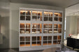 • Ripiani interni in vetro con tre barre illuminanti, accensione tramite radiocomando.