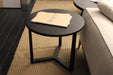 - Tavolino con struttura e piano d'appoggio in legno massello di frassino tinto marrone.